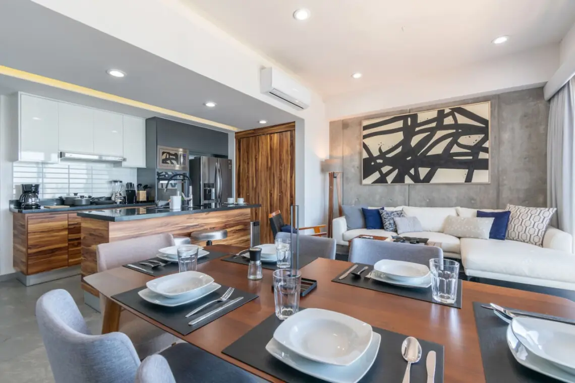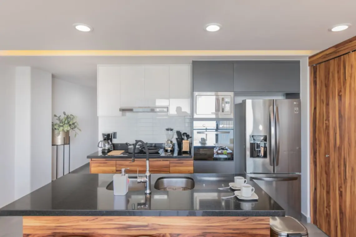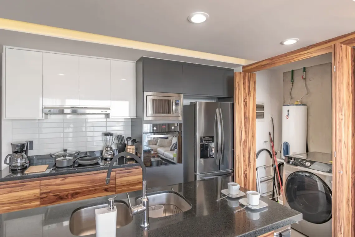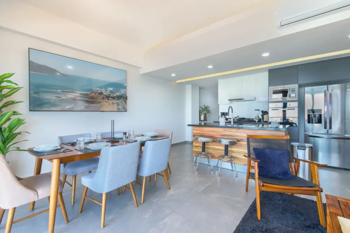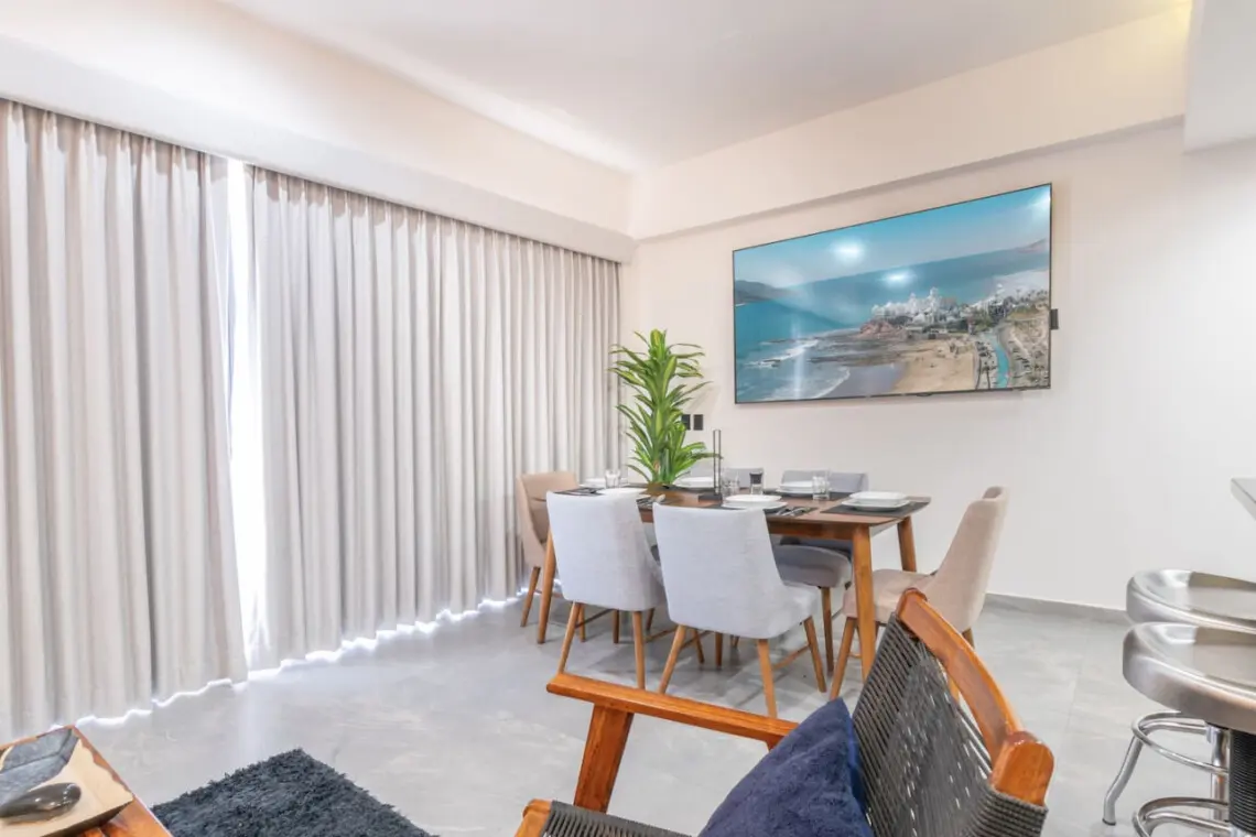 – Contamos con una sala con pantalla de 85 pulgadas, comedor y cocina equipada.