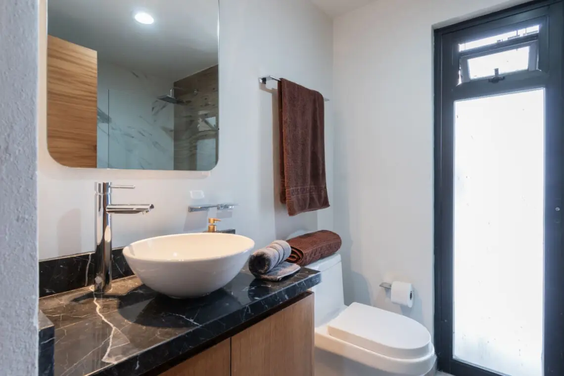 El departamento cuenta con 2 baños completos.
