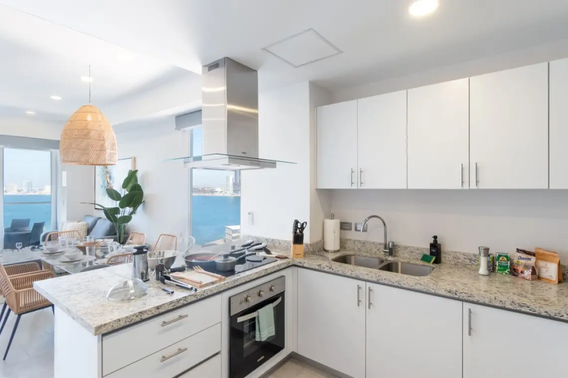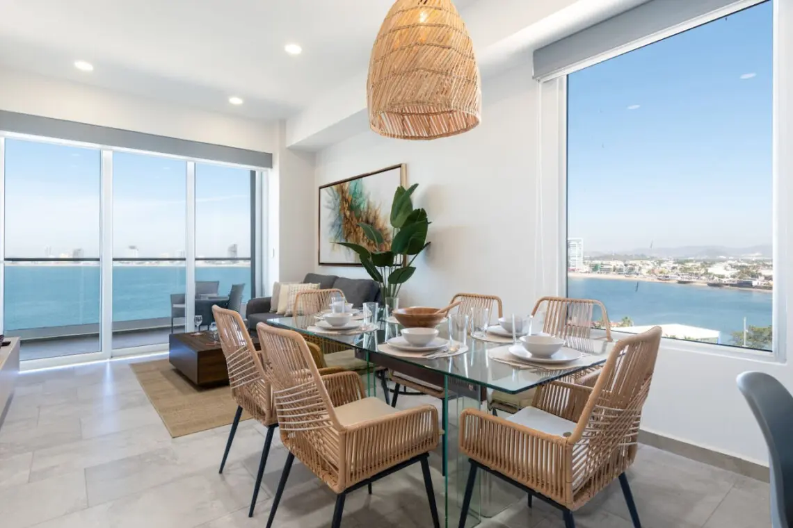 Este moderno departamento en el piso 7 de Punto Bahía es ideal para un fin de semana o una estancia larga en Mazatlán.