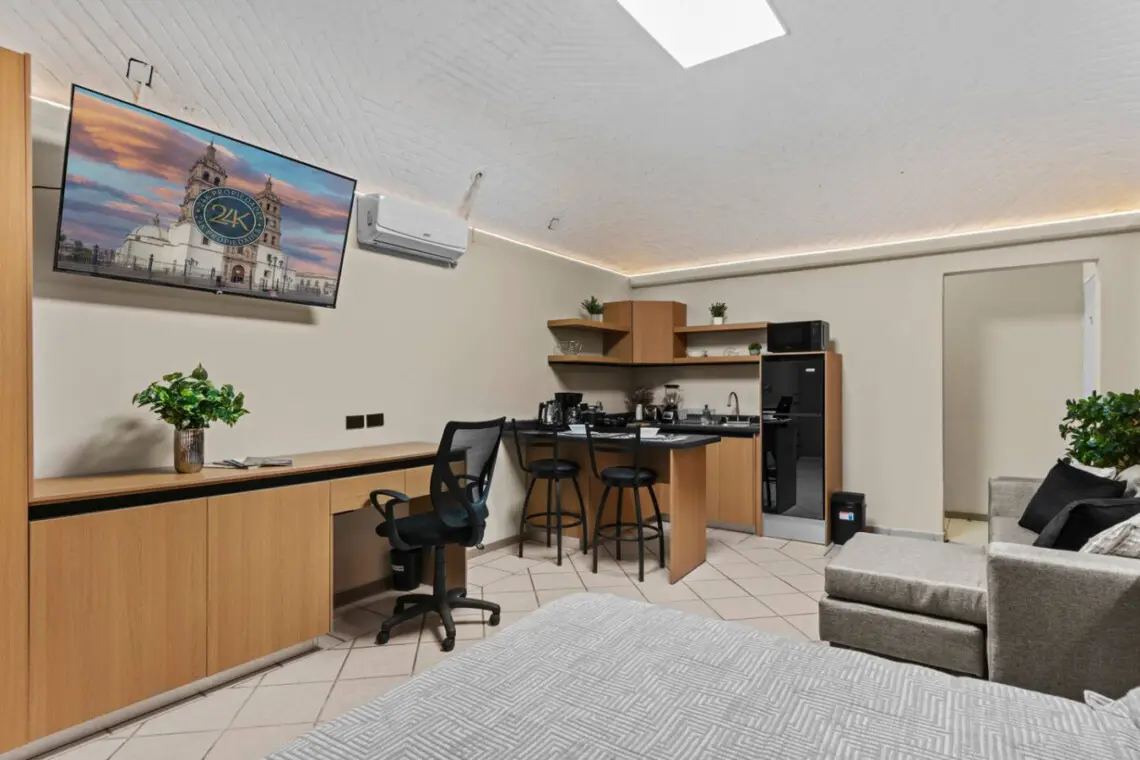 Este cómodo y bien equipado departamento es ideal para parejas, viajeros solos o estancias temporales en Durango. Diseñado para ofrecer una experiencia práctica y relajada, cuenta con un espacio acogedor que combina funcionalidad y confort.