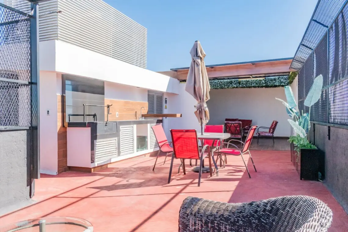 Para una experiencia aún más especial, el edificio cuenta con un roof garden con asador y cómodas sillas, ideal para disfrutar de momentos inolvidables al aire libre.