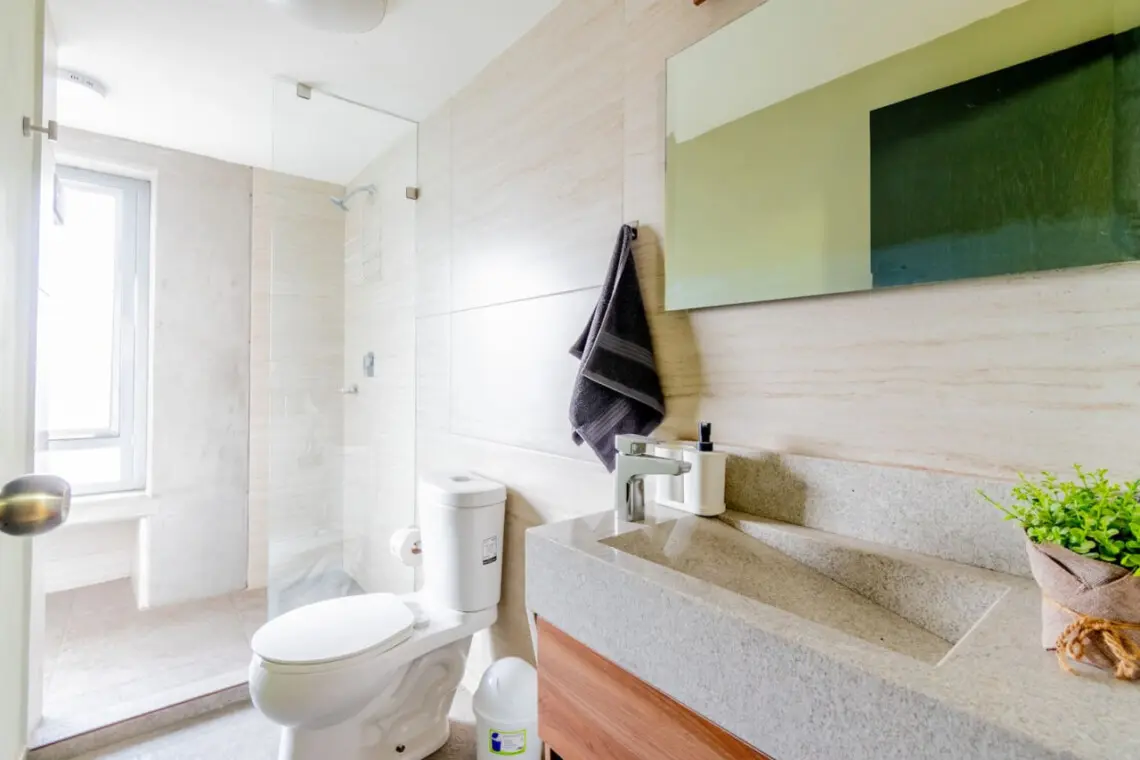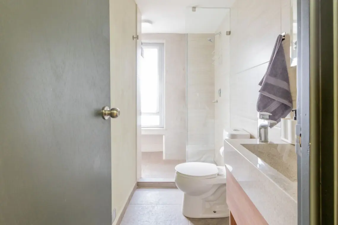 El baño completo con su regadera amplia y comoda.