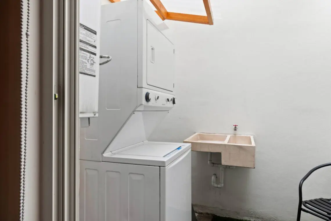 Additional conveniences include full laundry facilities and a private, designated parking spot. Every detail has been carefully curated to provide guests with a stylish, inspiring, and comfortable stay